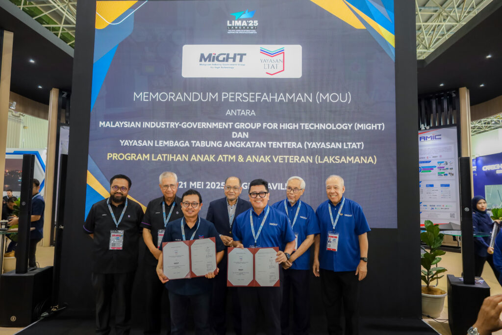 LANGKAWI, KEDAH, 21 MEI 2025 – Yayasan LTAT dan Kumpulan Industri-Kerajaan bagi Teknologi Tinggi (MIGHT) hari ini telah memeterai Memorandum Persefahaman (MoU) di Pameran Udara dan Maritim Antarabangsa Langkawi 2025 (LIMA ’25), menandakan kerjasama kali kedua antara kedua-dua pihak dalam memperkasa kemahiran teknikal dan kebolehpasaran anak-anak Angkatan Tentera Malaysia (ATM) serta anak-anak Veteran ATM.