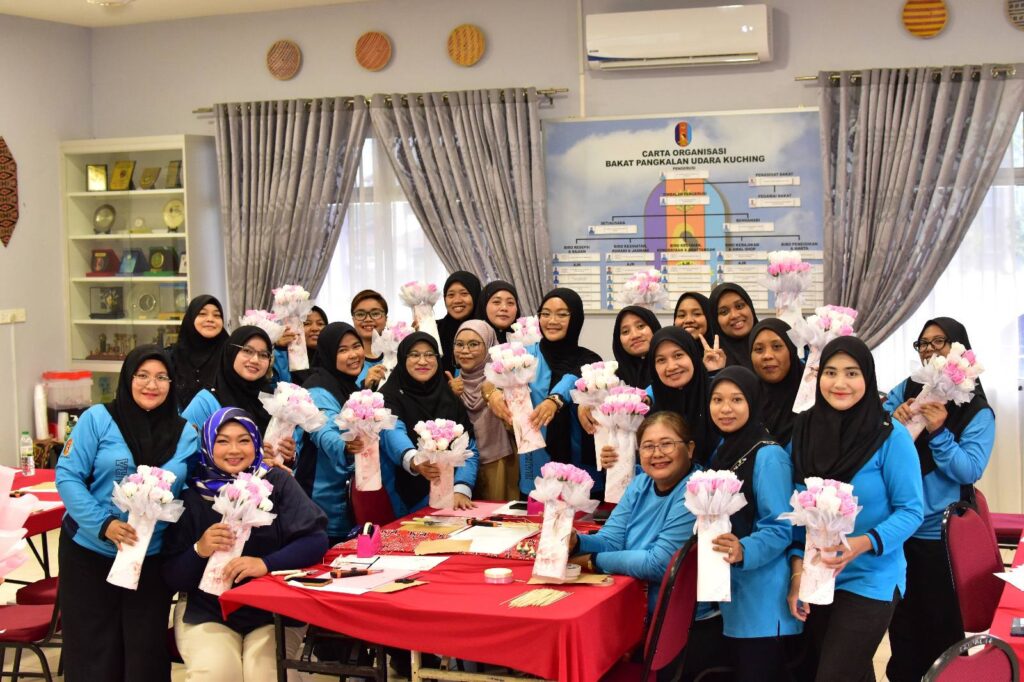 KUCHING – Seramai 20 peserta daripada ahli BAKAT Pangkalan Udara Kuching telah menyertai Kursus Gubahan Bouquet Bunga Sabun bertempat di Kolej Komuniti Santubong. Ia dianjurkan adalah susulan daripada taklimat Inisistif Yayasan LTAT dan Program K²T kepada Ahli BAKAT bagi mendalami teknik gubahan bouquet bunga sabun. Ini selaras bagi menyokong usaha Yayasan LTAT melalui inisiatif Kemahiran Keluarga Tentera (K²T ) dalam memperkasa pembangunan modal insan warga pertahanan.
