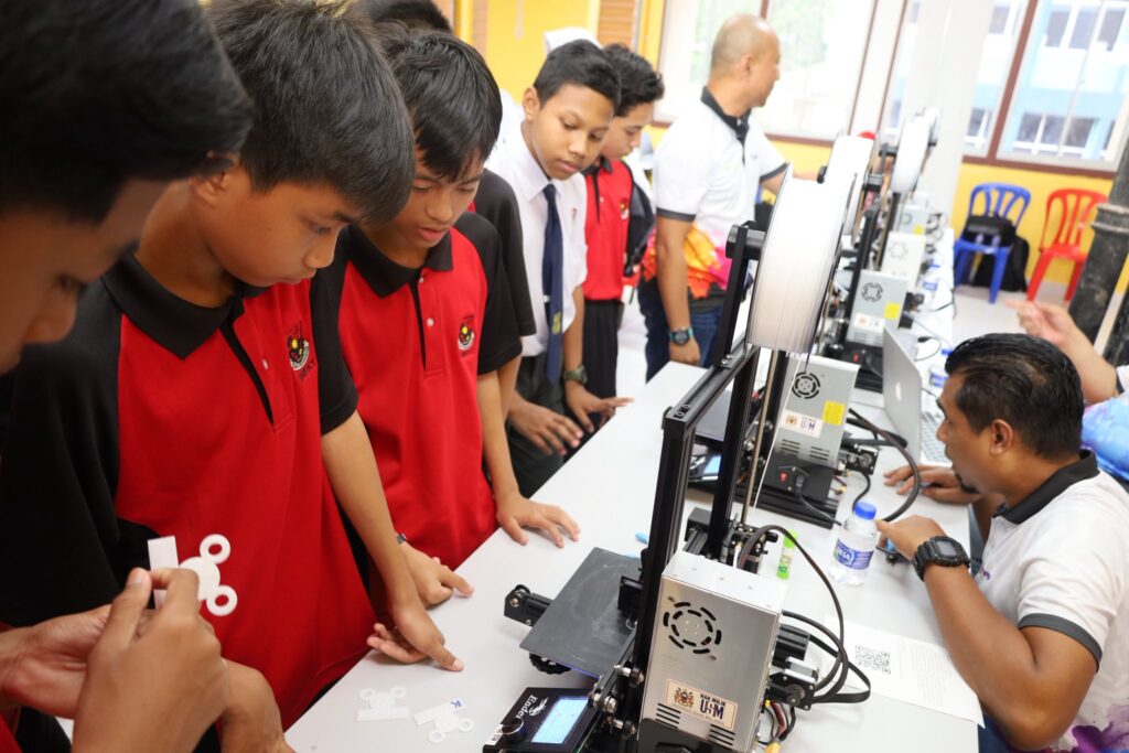 Seramai 60 pelajar Tingkatan 1 mengikuti modul 3D Printing yang dikendalikan sepenuhnya oleh USM. Tenaga pengajar utama, YBrs. En. Khairul Anuar bin Mohd Zain, Pegawai Penyelidik CEDEC USM memperkenalkan kepada pelajar perisian reka bentuk 3D, teknik membangunkan model dalam dimensi sebenar, dan demonstrasi serta latihan mencetak menggunakan peralatan 3D printer yang dibawa khusus oleh USM untuk pelaksanaan program ini. Pelajar turut berpeluang menghasilkan objek percetakan 3D mereka sendiri pada akhir sesi.
